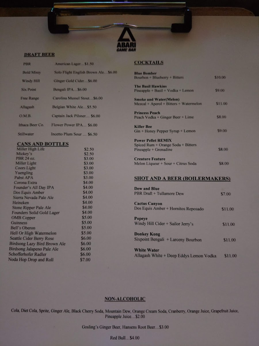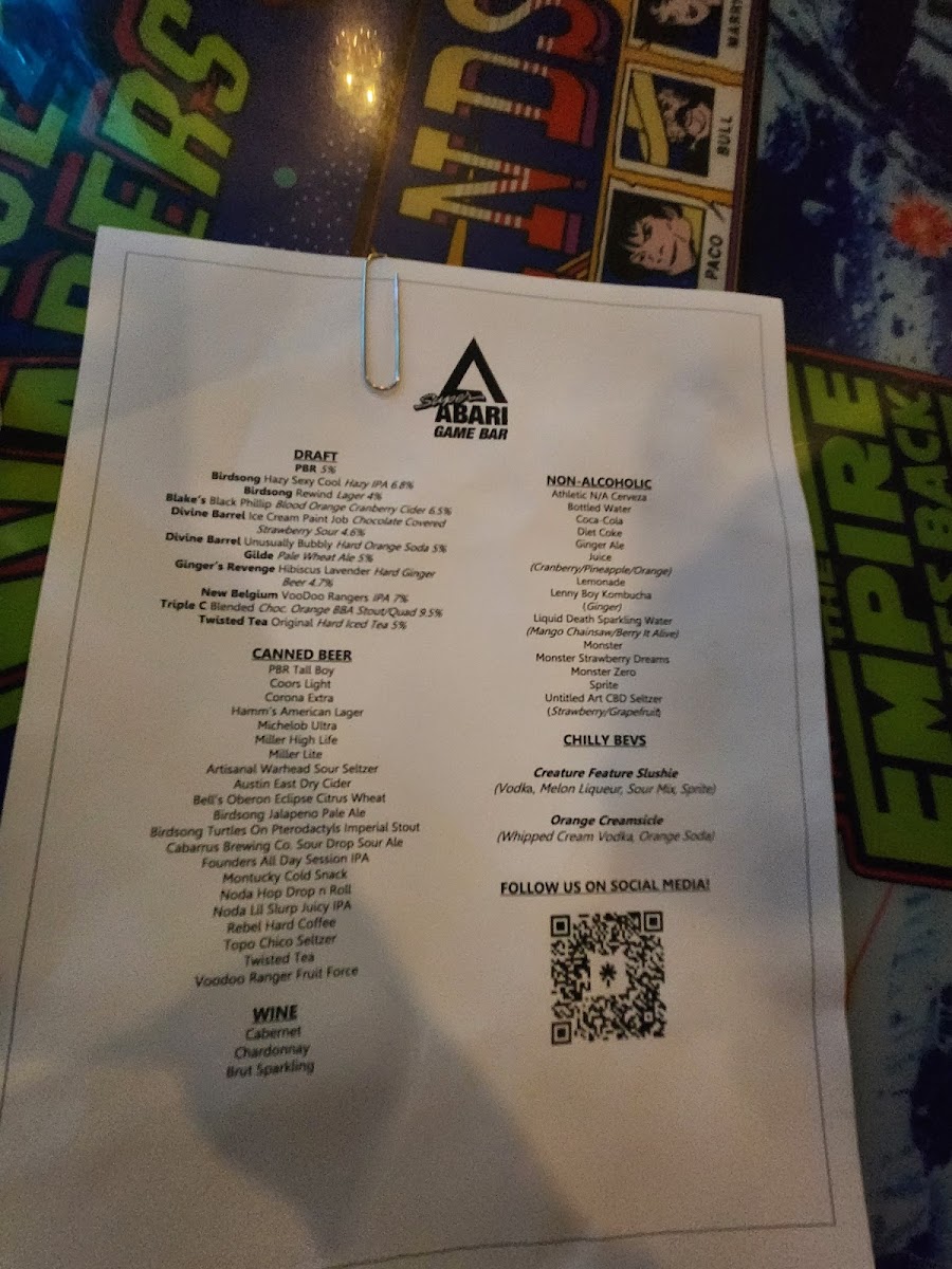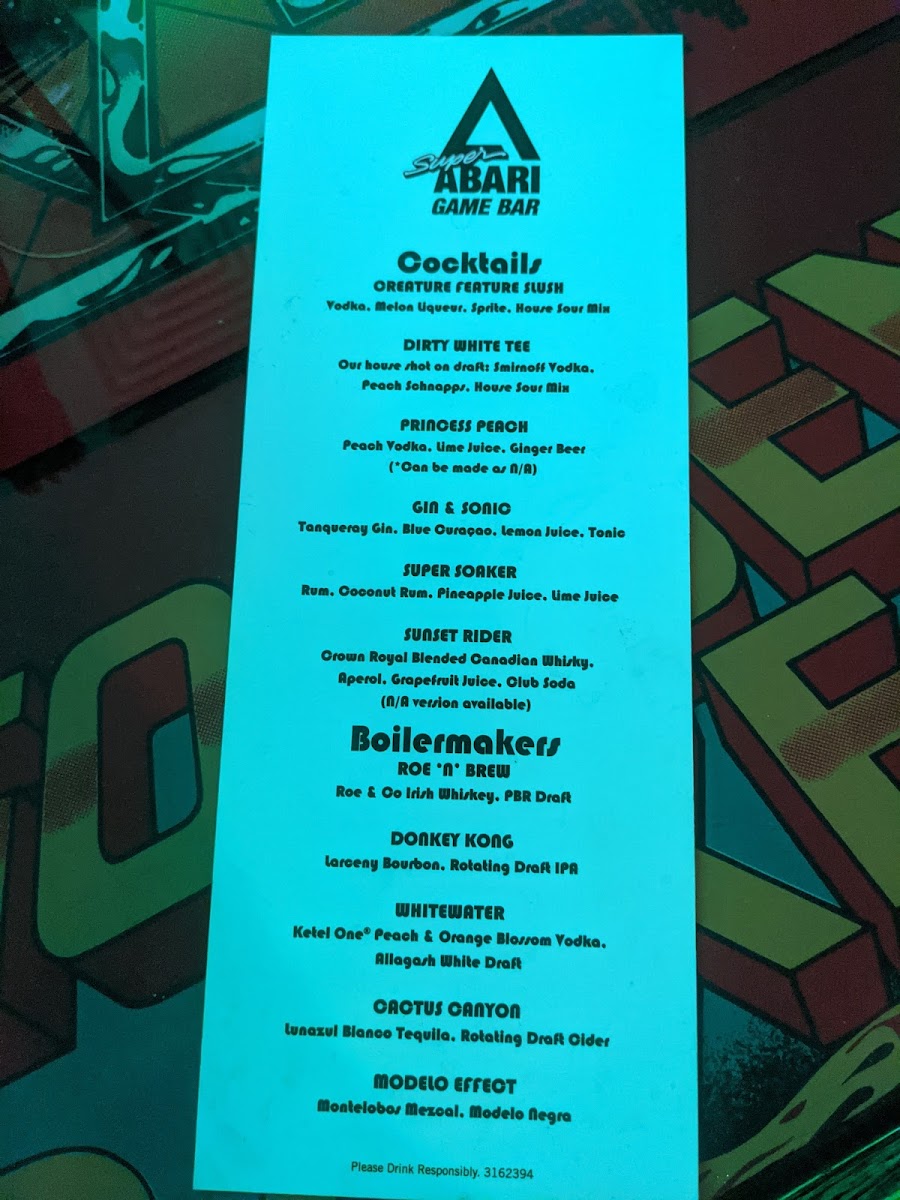 The menu at Super Abari Game Bar offers a straightforward selection of drinks that complement its lively yet laid-back arcade atmosphere. Expect a mix of approachable draft beers like PBR American lager alongside more distinctive brews such as Belgian white ales and IPAs, ideal for unwinding between games or hanging out with friends.